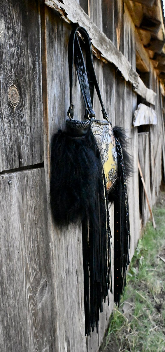 This Top Shelf bag has 20” triple fringe with a lot of texture and rhinestones!!