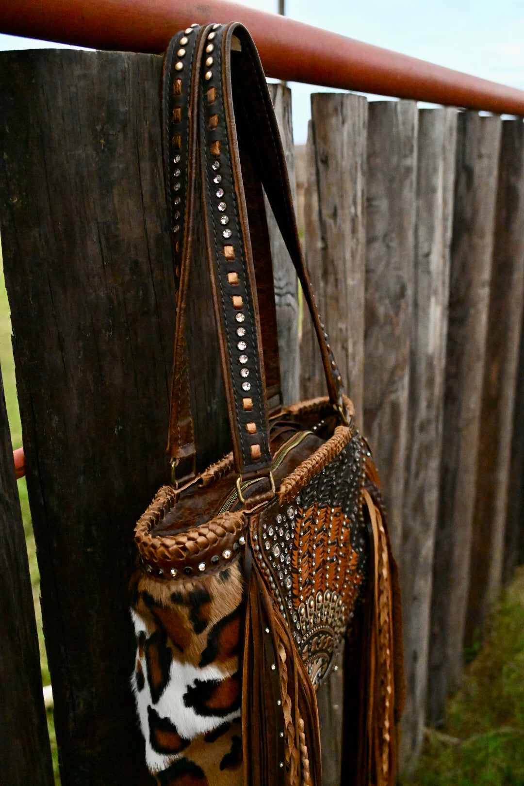 This Top Shelf bag has 20” triple fringe with a lot of texture and rhinestones!!