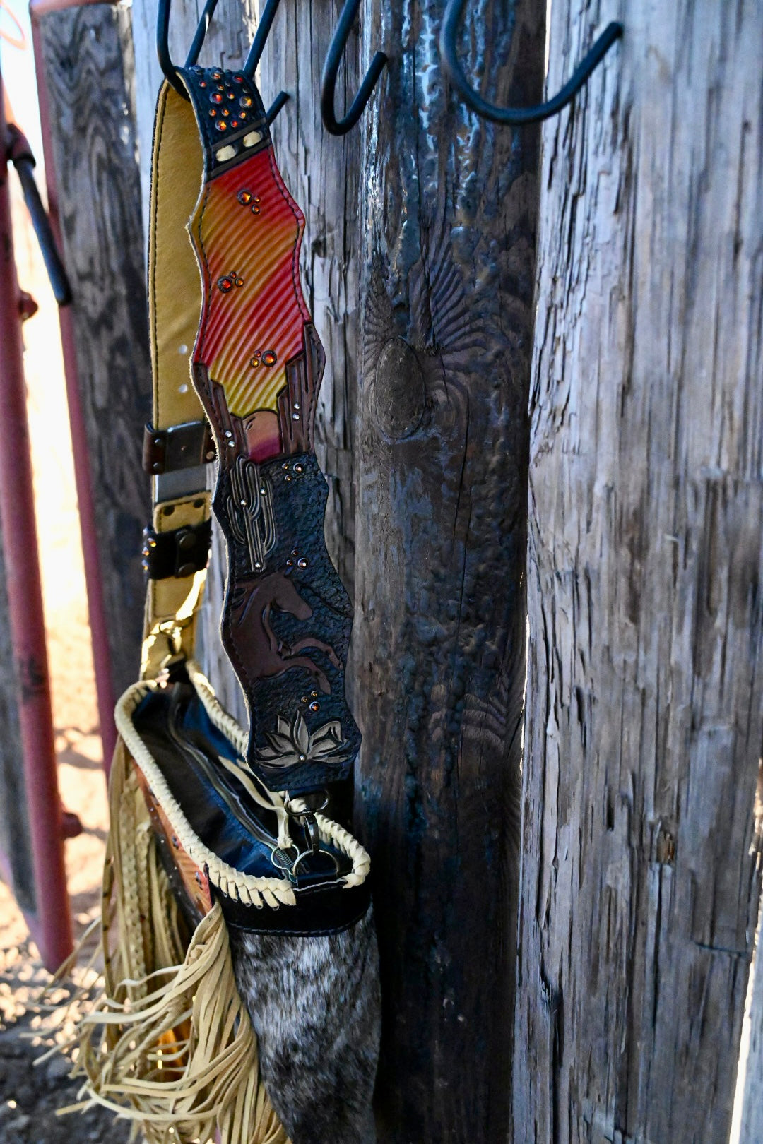 she has 20” textured and rhinestone fringe and a Blevins strap
