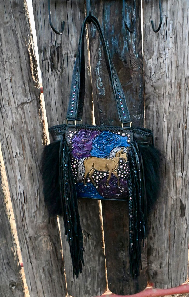 she has 20” textured and rhinestone fringe and a Blevins strap