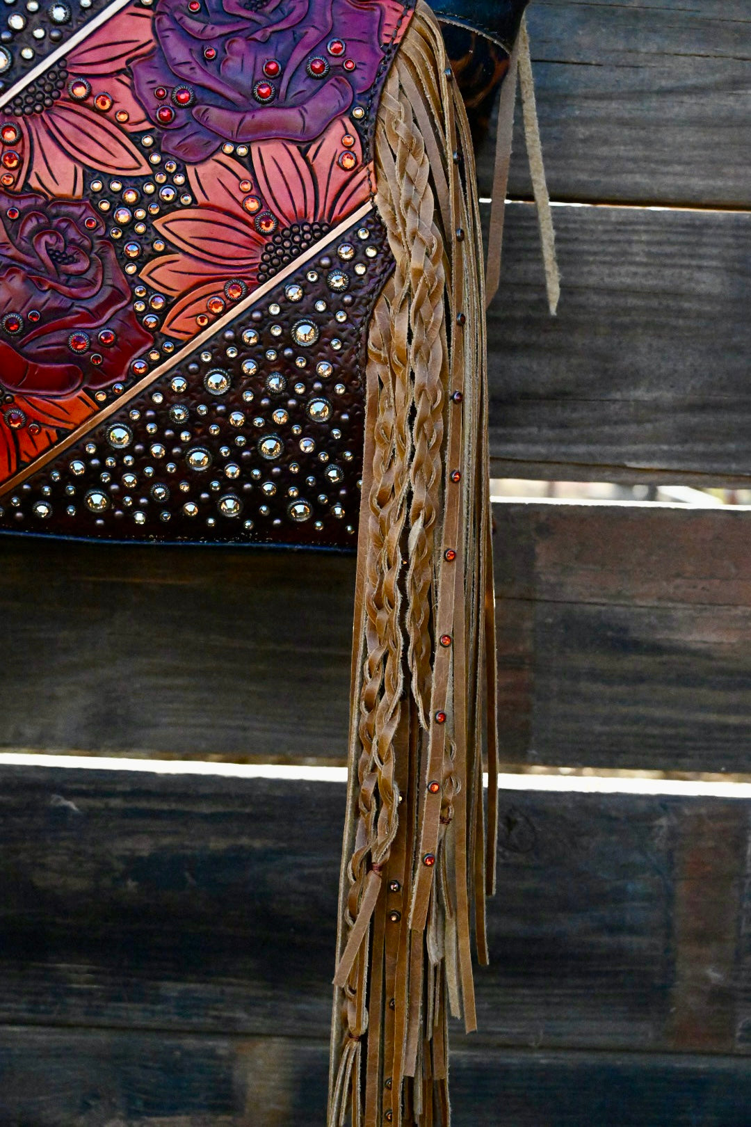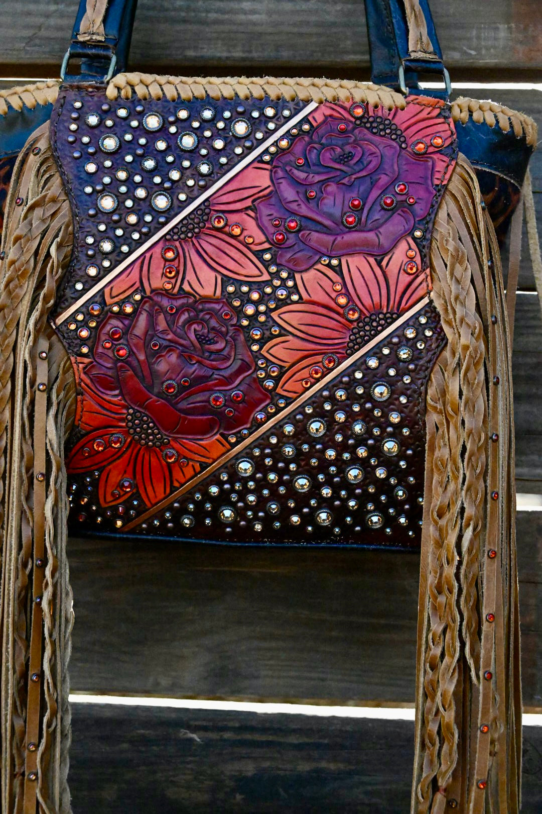 His bag measures approximately 14”x11”x3” and comes with a zipper closer. It has 2 handles and the distance from the top of the handle to the bag is 12”. The interior is lined and has 3 pockets, one zips. There is also a large cell phone pocket on the back!!