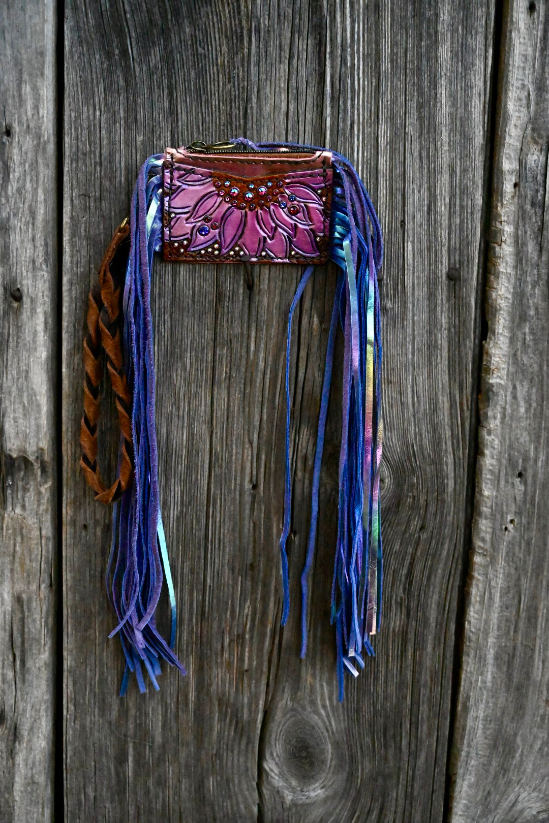 The perfect little grab and go wallet. The girl fits several cards and has a zipping pocket for coins, cash, ID, key fob etc!! Comes with removable wristlet strap.