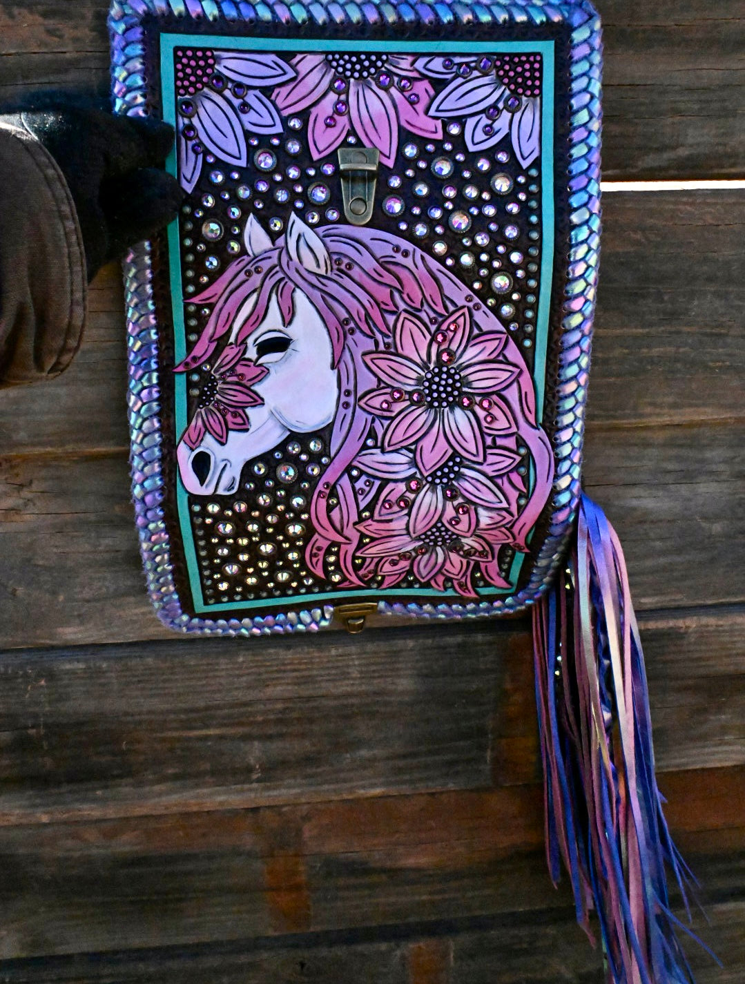 These wallets are cute enough to be carried on their own as a clutch or put in your bags for your wallet. It includes a removable wristlet strap and fringe tassel. The interior features 14 card pockets with an ID window and has 4 horizontal pockets. My favorite feature about these is there is even a zipping coin pocket. There is tuck lock clasp for closure and the exterior measurement when closed is 9.5"x5"x2". When the wallet is fully opened it is approximately 13" long. Comes with 2 d rings so you can add a crossbody strap if desired!!