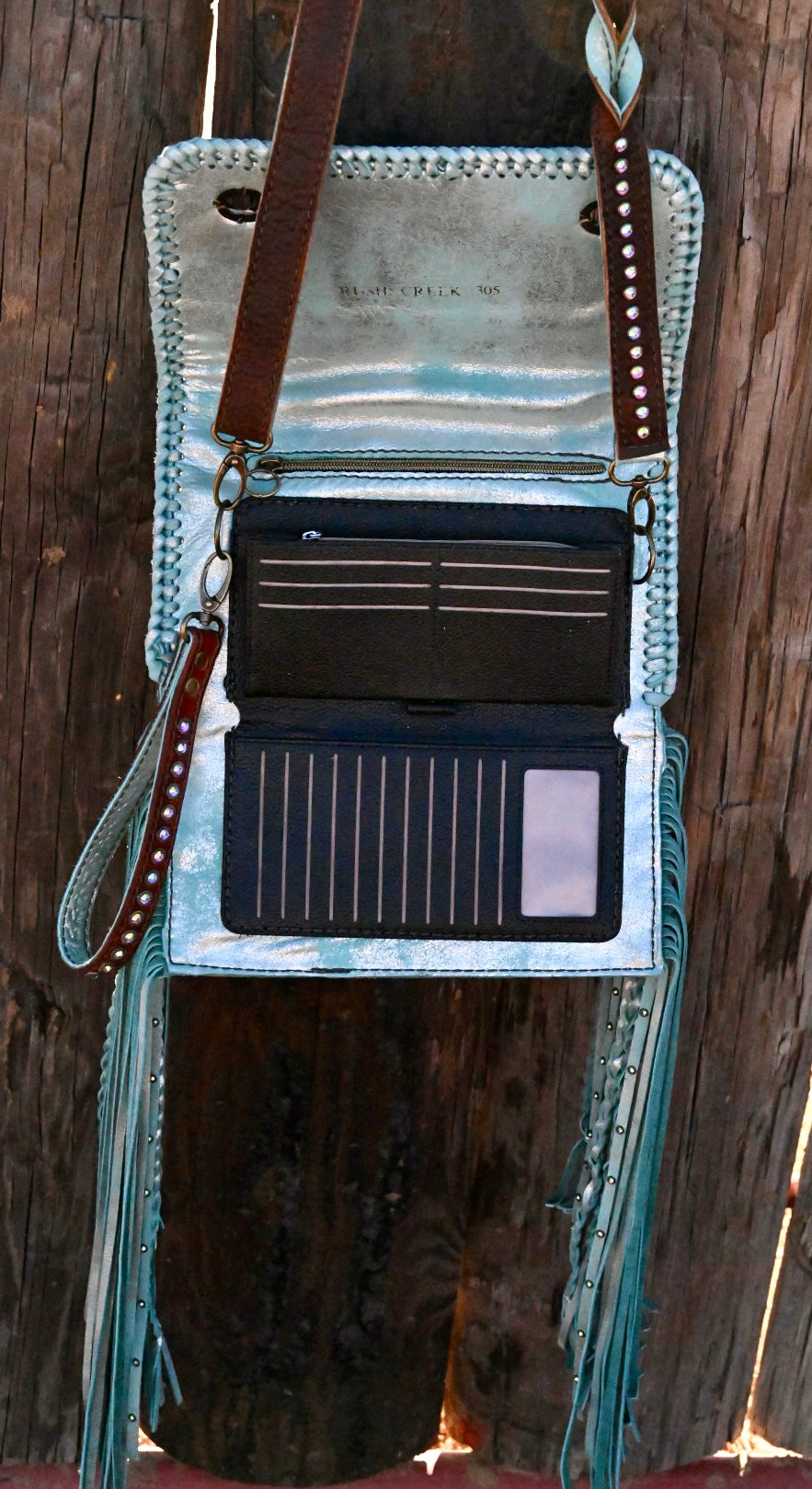It’s more than just a Clutch!! These Cowtown bags can be carried as a clutch, wristlet, or crossbody bag. The interior has several card pockets, plenty of room for a cash/checkbook, 2 interior zipper pockets (one big enough for a phone), and has 2 closures to keep the flap from ever bending. All straps are included and removable.