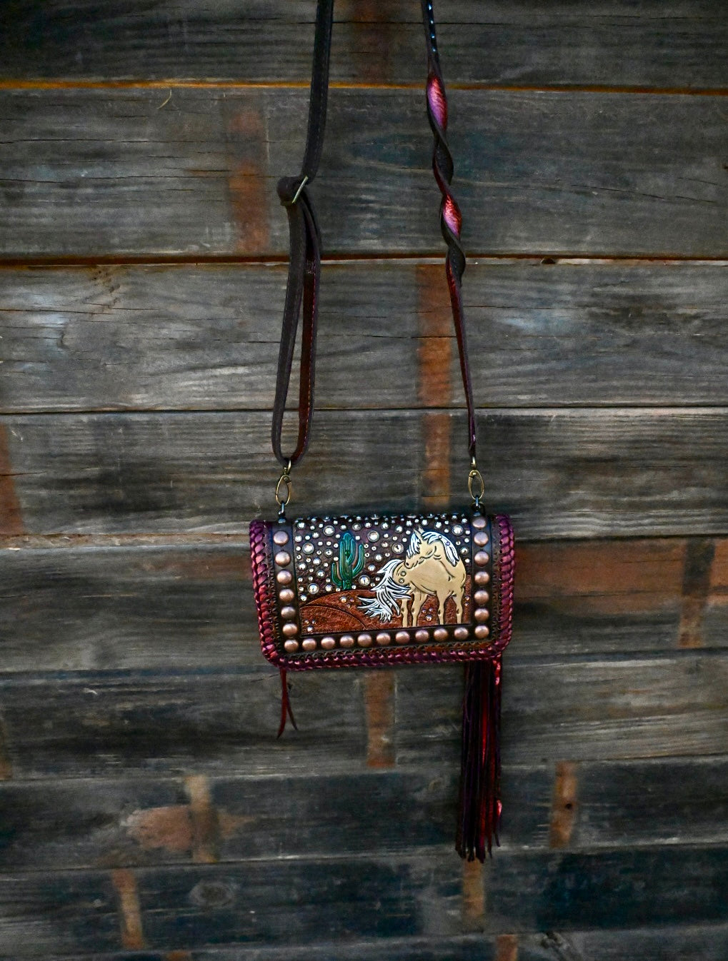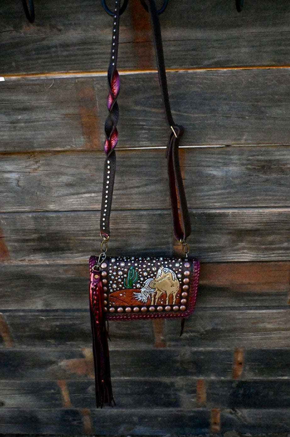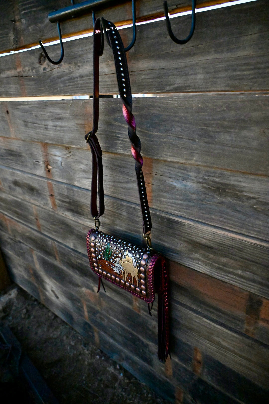 This comes with a twist strap however you can add fringe and rhinestone/texture to strap!!