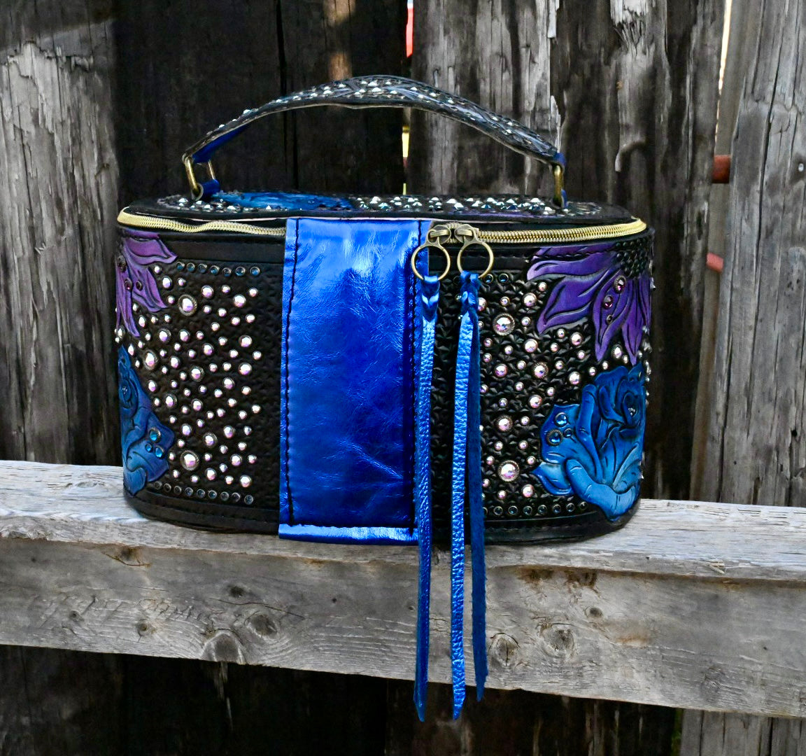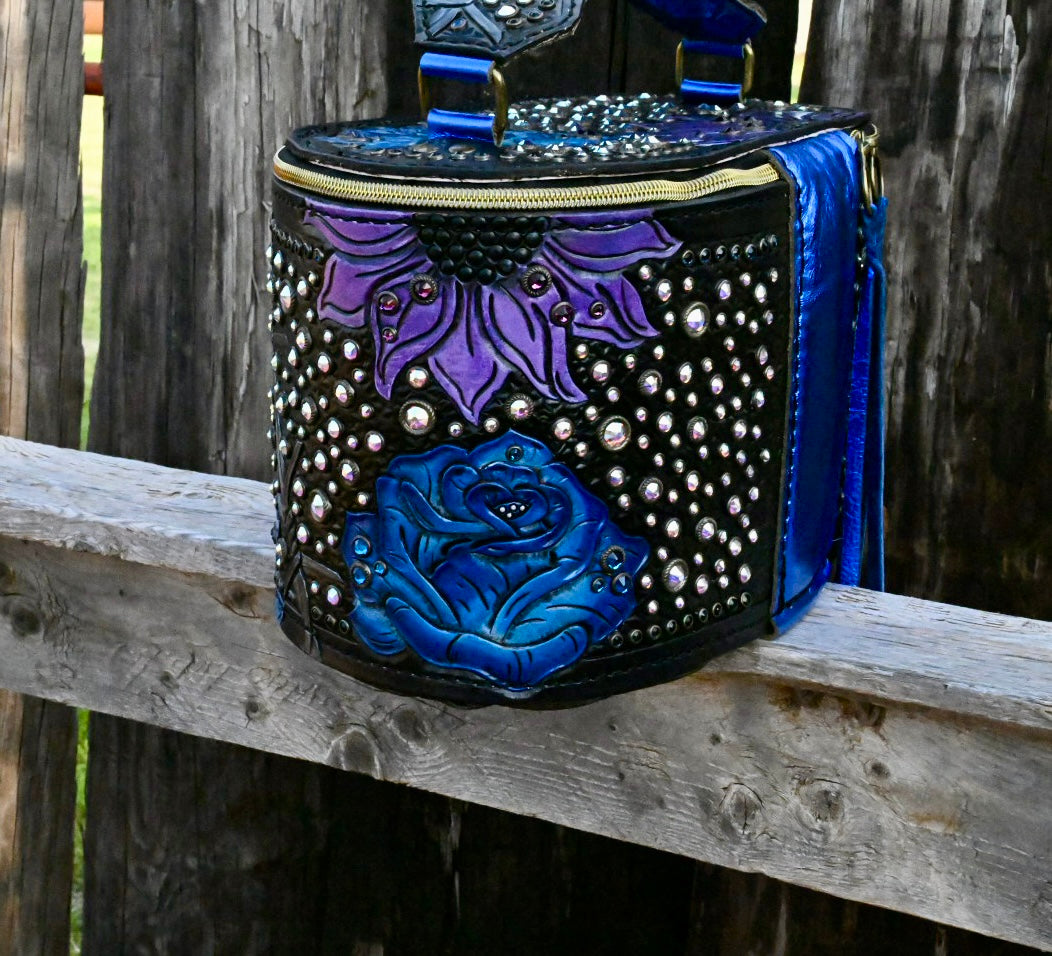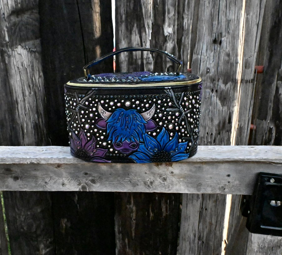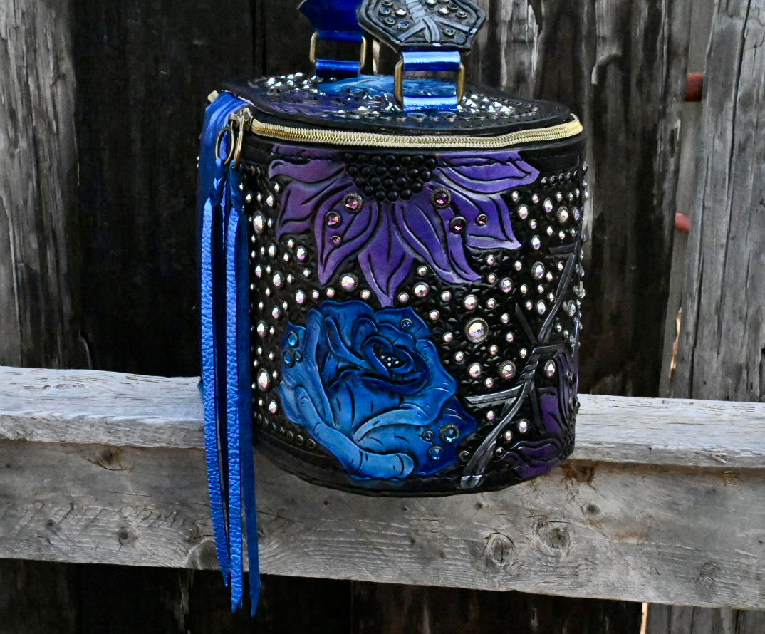 This might be one of my favorite products we are making right now. These train cases measure 11"x6"x6" and the interior is fully lined so it can be easily cleaned out. They come with 4 jewelry trays however they can be used for jewelry, make up, or anything else you can dream of! The bottom has 6 hardware spots to protect it from being set on surfaces. These are made with thick veg tan leather so they hold their shape and they are durable.